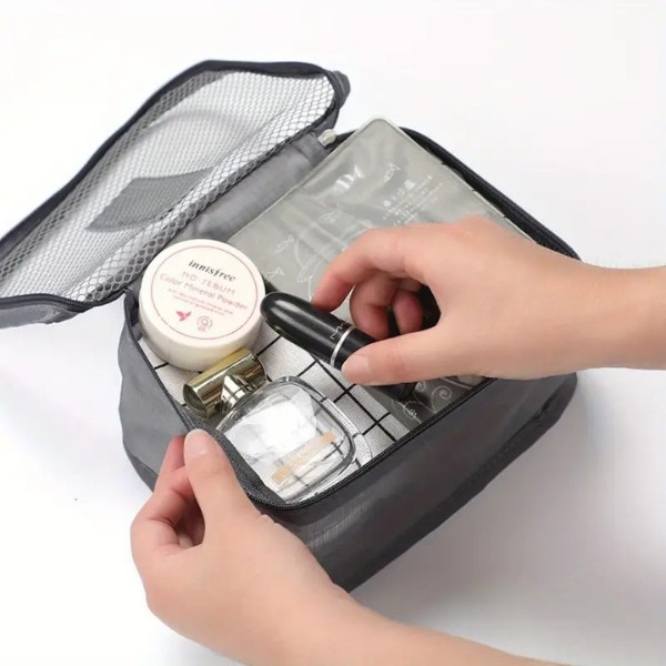 Trpežen, vodoodporen material zagotavlja, da vaše toaletne potrebščine in kozmetika ostanejo varne in suhe. Majhne torbice z zadrgo so idealne za ličila, losjone ali tekoče predmete, ki morajo ostati na mestu brez puščanja v vašo torbo.