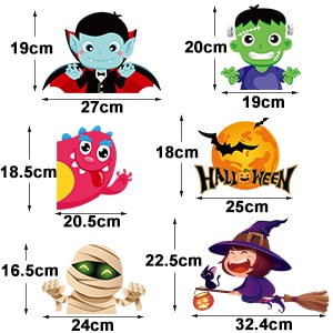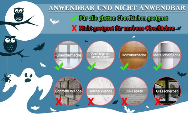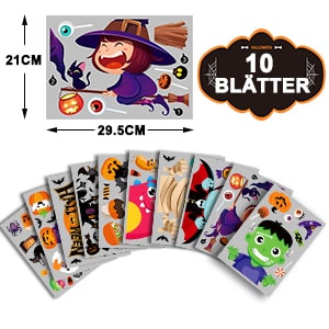 • Velikost: nalepke za okna za noč čarovnic, sestavljene iz 10 nalepk, vsaka 21 x 29,5 cm