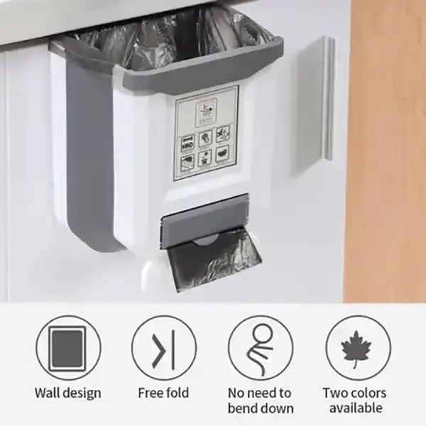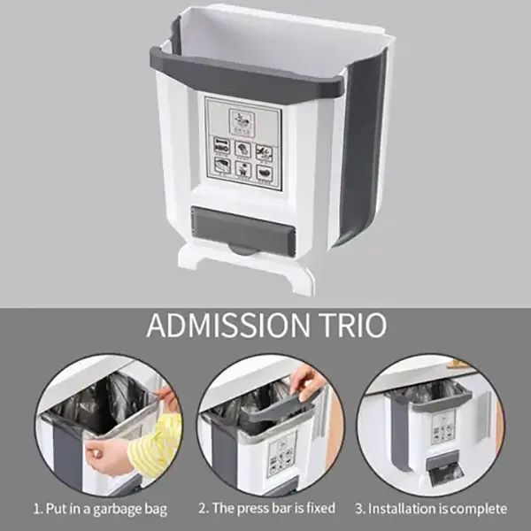Z zložljivo in obesljivo zasnovo prihranite več prostora. Ko ga ne uporabljate, ga lahko zložite in odprete, ko ga potrebujete. Na dnu koša za smeti ima tudi fiksni nosilec, zato ga lahko postavite na tla ali kamorkoli želite.