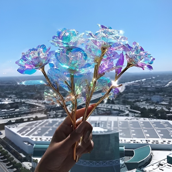 Vsaka vrtnica je izdelana z mavričnim, holografskim premazom, ki se čudovito lesketa v svetlobi in ustvarja bleščanje, podobno galaksiji, ki je preprosto očarljivo.