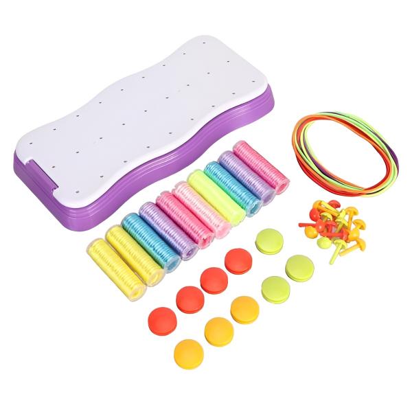 Naš komplet za pletenje, ki se ga lotite sami, zagotavlja neskončno zabavo s pisanimi vrvicami in otrokom pomaga izraziti njihovo ustvarjalnost in domišljijo.