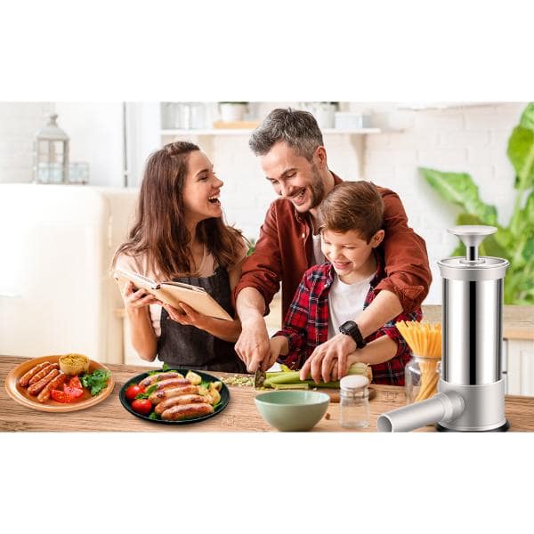 Opremljen s 4 cevmi iz PP in 2 krtačama je ta polnilec mesnih klobas odličen za praznovanja in družinska srečanja.