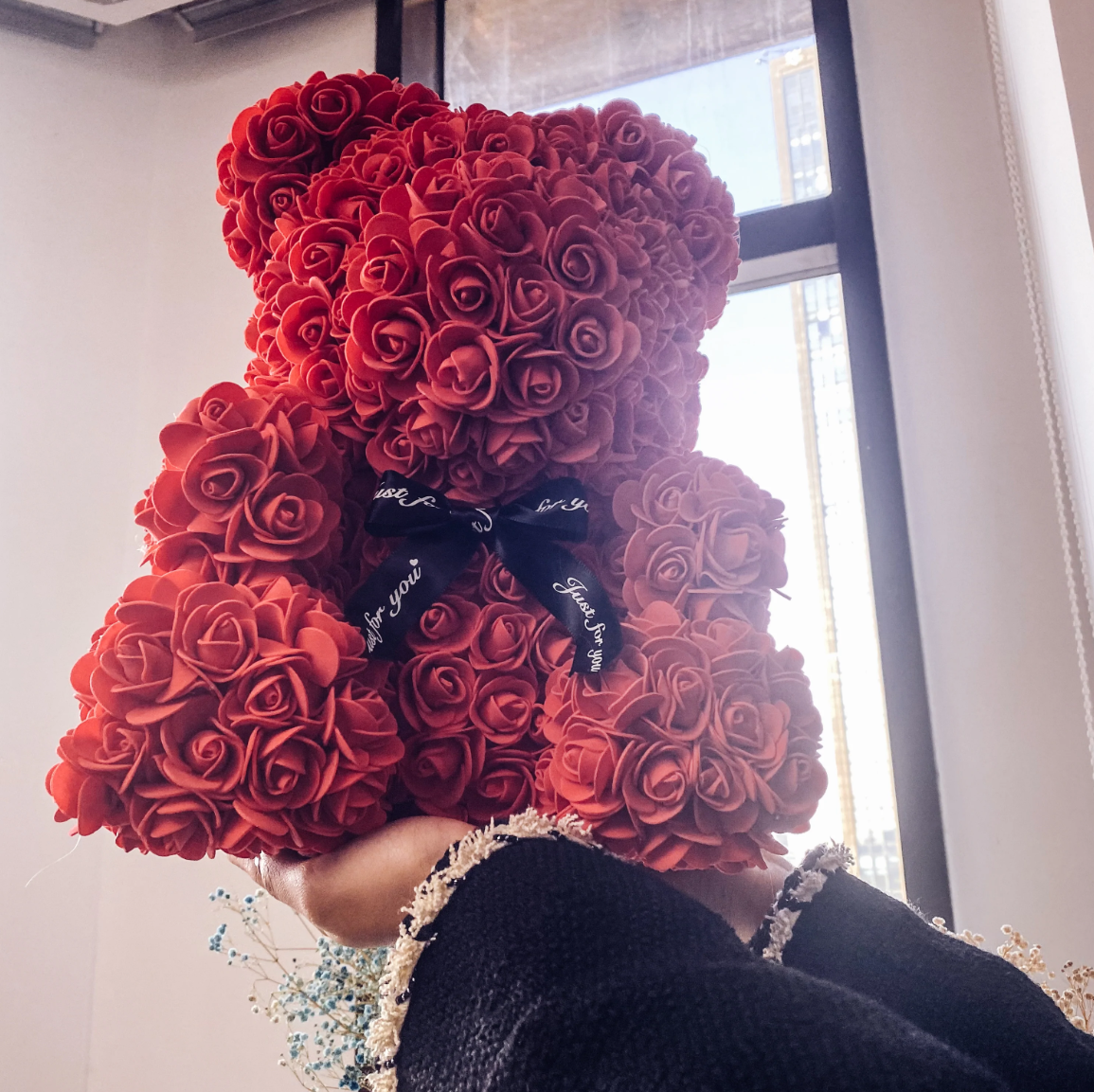 Medvedek iz vrtnic je ročno izdelan iz več kot 500 umetnih vrtnic, ki simbolizirajo ljubezen, zato je to najlepši način, da svojim najdražjim izkažete večno ljubezen in naklonjenost.