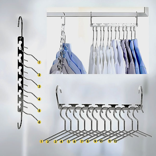 Spremenite svojo garderobo z obešalnikom za oblačila SNAPHANG. Vsak obešalnik lahko drži do 12 kosov oblačil vodoravno ali 6 navpično, zaradi česar je idealen za optimizacijo prostora v garderobi.